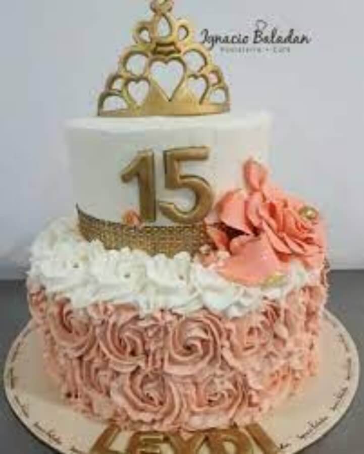 Se realizó una torta de 15 años con el diseño de princesa, con crema y fondant.